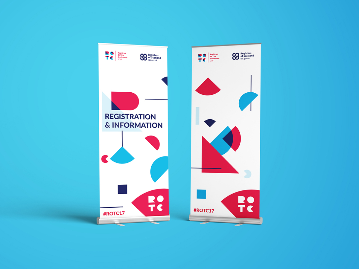 Edinburgh hosted the Registrars of Title Conference 2017 and a full branding was commisioned by Registers of Scotland. The deconstructed brand geometry becomes a visual language that can express itself in an infinite number of graphically-composed phrases and sentences.